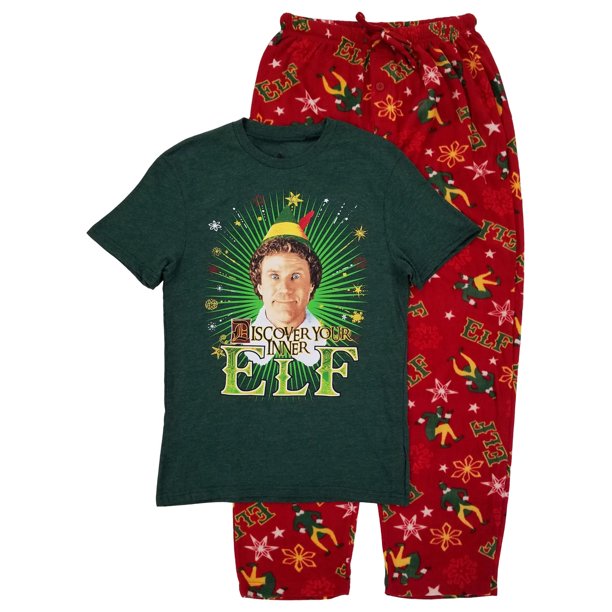 Elf Mens 2 Piece Dark Green Red Christmas Holiday Sleepwear Pajama Set Xl Walmart Com